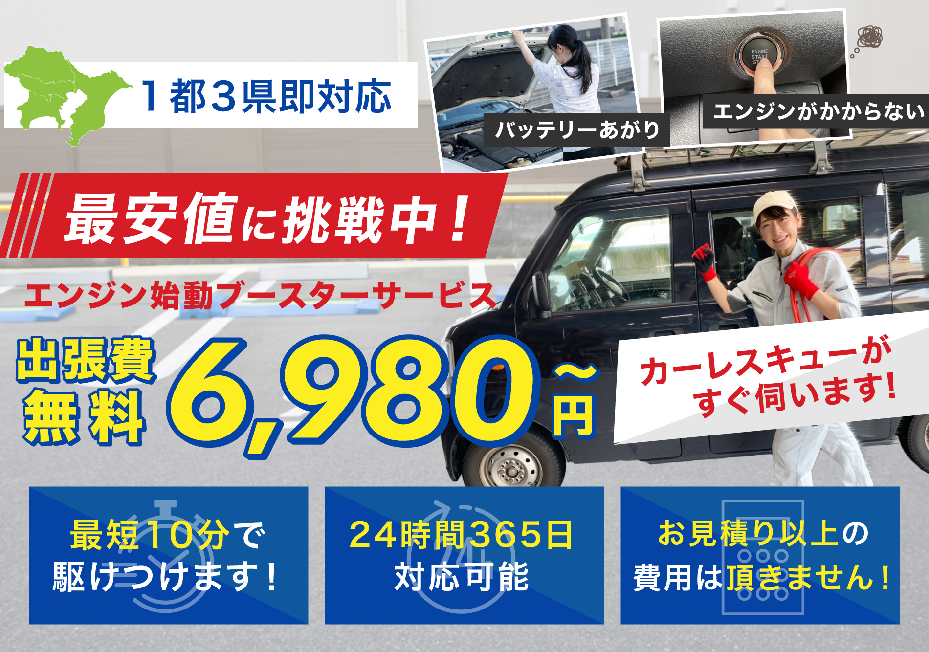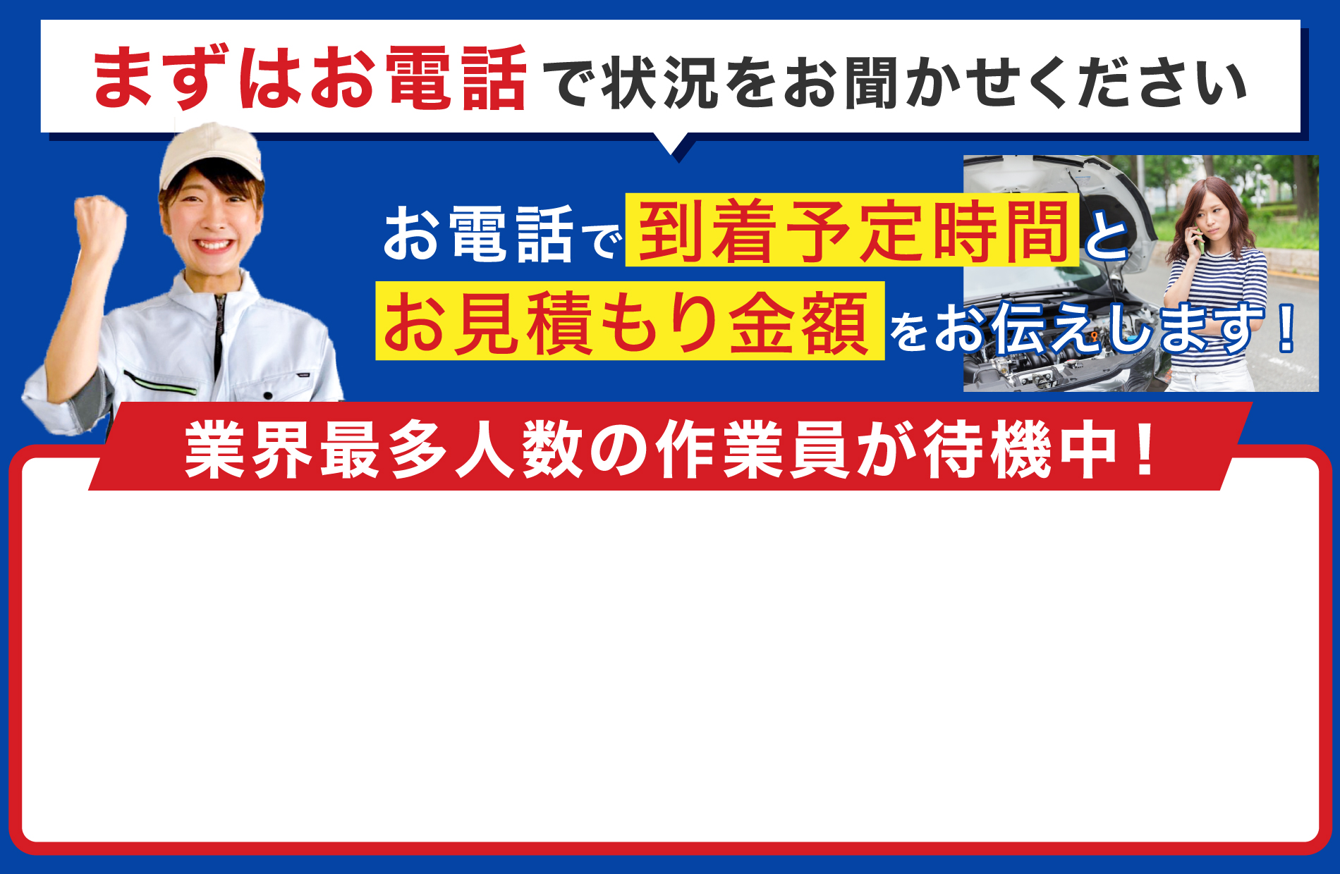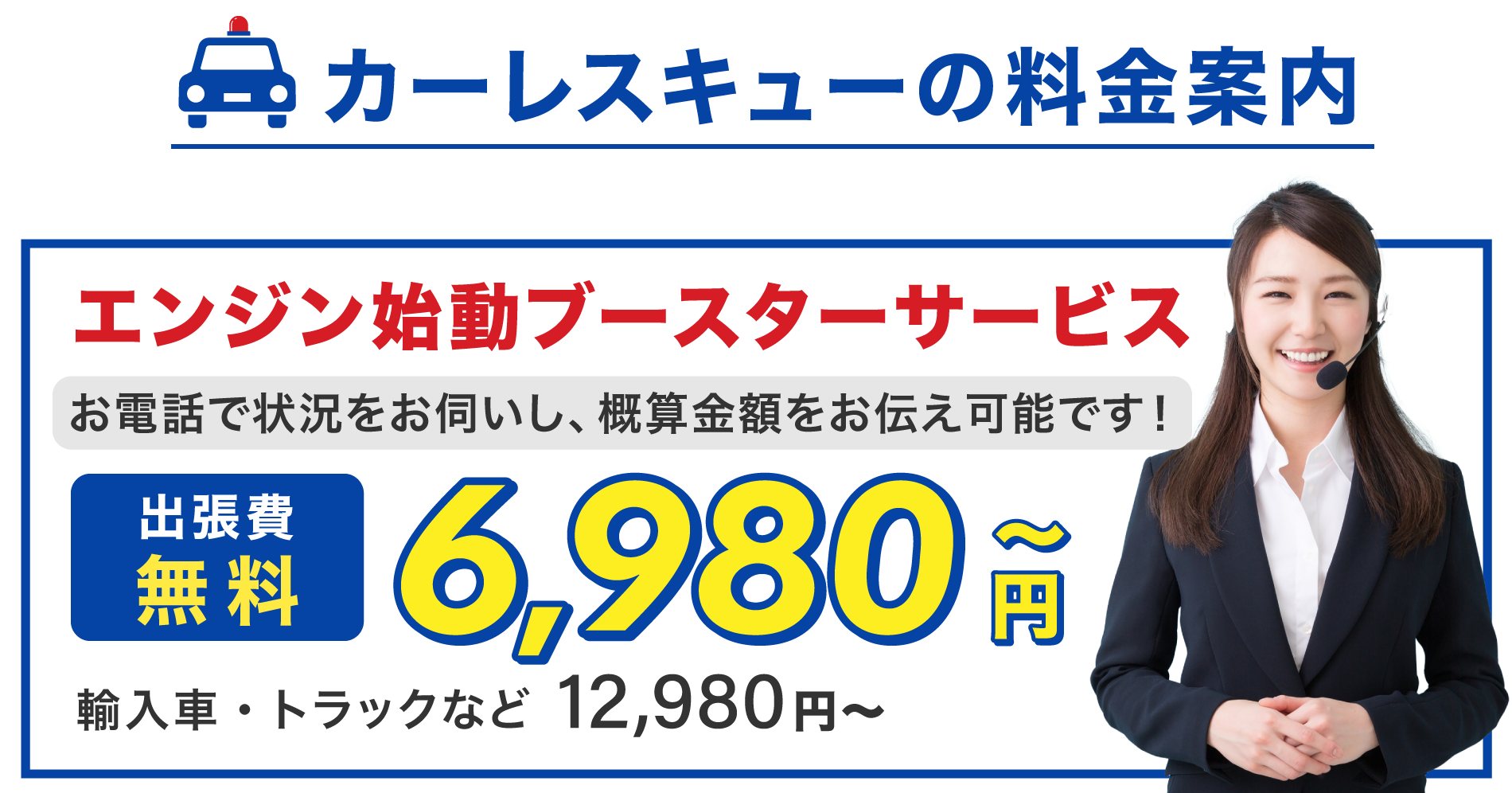 カーレスキューは自社スタッフのみで運営しているため、コストを最小化している分、お客様へのご提示料金に反映しています。