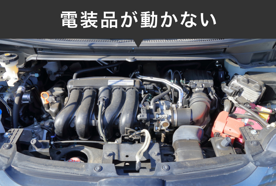 メーター・パワーウィンドウ・パワーシート、ラジオなどの電装品はエンジン停止時、バッテリーの電気で動きます。バッテリーが上がってしまうと、これらの機器も反応がなくなります。